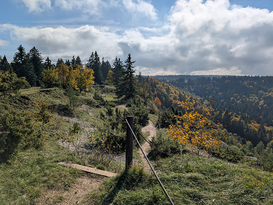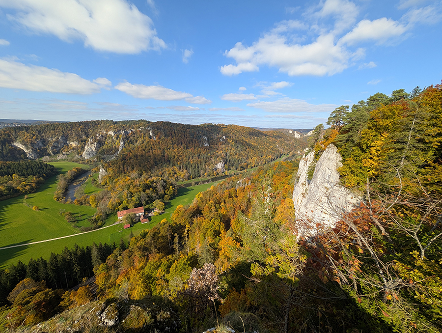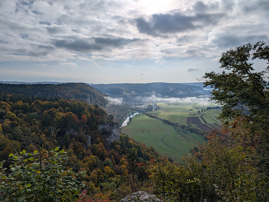 Sicher hat auch der Donauberglandweg stellenweise durchaus seinen Reiz. Vor allem jetzt im Herbst haben die einzelnen Waldabschnitte in den herbstlichen Farben eine unglaubliche Atmosphäre. Aber ein ähnliches Bild finde ich zu dieser Jahreszeit eben auch in der Pfalz und im Schwarzwald. Und vom Donautal mit seinen markanten Kalkfelsen bekommt man auf dem Donauberglandweg erst auf der letzten Etappe nach Beuron etwas zu sehen.