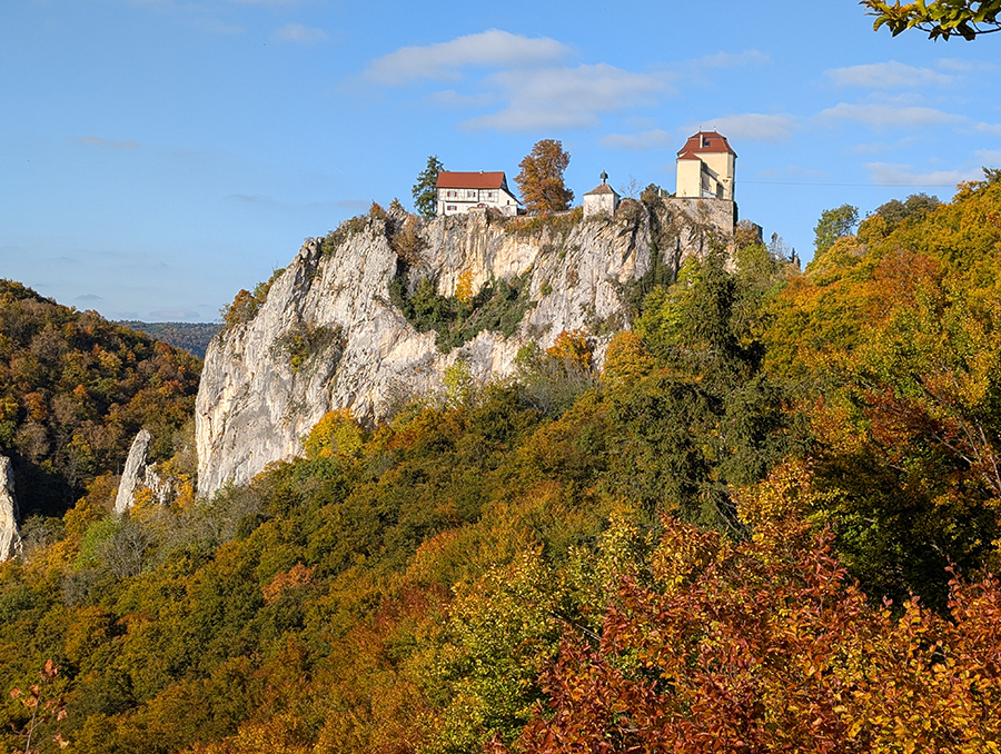 Sicher hat auch der Donauberglandweg stellenweise durchaus seinen Reiz. Vor allem jetzt im Herbst haben die einzelnen Waldabschnitte in den herbstlichen Farben eine unglaubliche Atmosphäre. Aber ein ähnliches Bild finde ich zu dieser Jahreszeit eben auch in der Pfalz und im Schwarzwald. Und vom Donautal mit seinen markanten Kalkfelsen bekommt man auf dem Donauberglandweg erst auf der letzten Etappe nach Beuron etwas zu sehen.